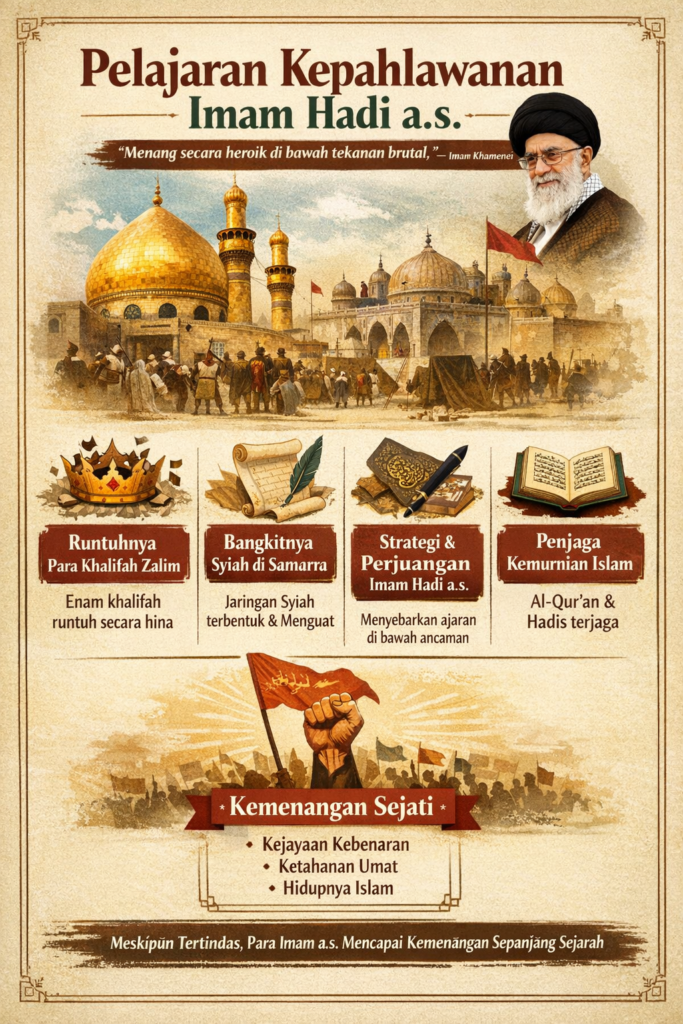 Dalam pandangan Imam Ali Khamenei, pertarungan antara Imam Ali al-Hadi dan para khalifah Abbasiyah pada masanya bukanlah sekadar konflik politik biasa. Ia adalah medan ujian besar antara kebenaran dan kekuasaan tiranik. Dalam pertarungan itu, sebagaimana ditegaskan Imam Khamenei, pihak yang menang—baik secara batin maupun lahir—adalah Imam Hadi as. Sebuah kemenangan yang tidak selalu tampak dalam bentuk tahta dan senjata, tetapi nyata dalam keberlangsungan risalah, kekokohan umat, dan kelanggengan ajaran Islam yang murni.