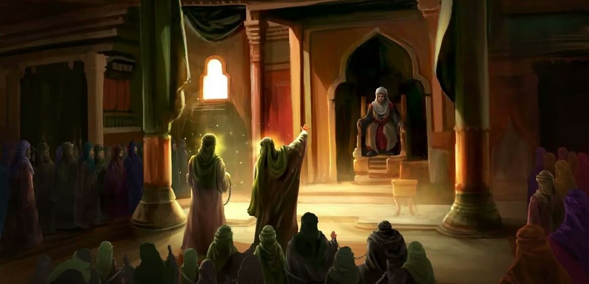 Ketika pasukan tiran membawa para tawanan dari keluarga Husain ke istana Yazid di Syam, Zainab berdiri tegak di hadapan penguasa yang haus darah itu. Yazid berusaha menulis ulang sejarah dengan menuduh Imam Husain as sebagai pemberontak. Tetapi Sayidah Zainab, dengan satu khotbah yang menggetarkan, meruntuhkan seluruh propaganda itu.